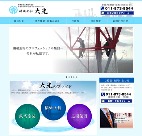 コーポレートカラーのブルーを基調にしたサイト。